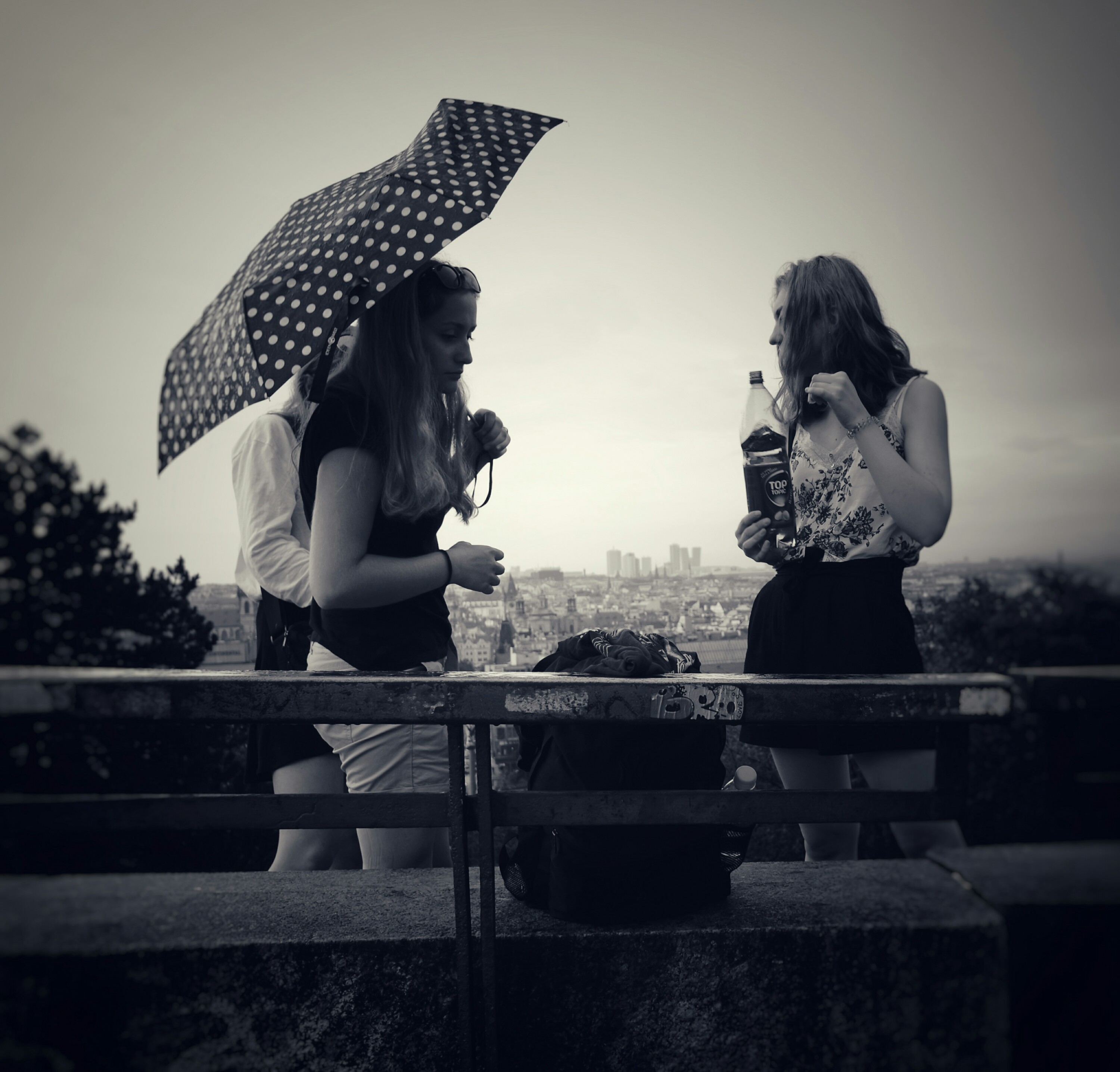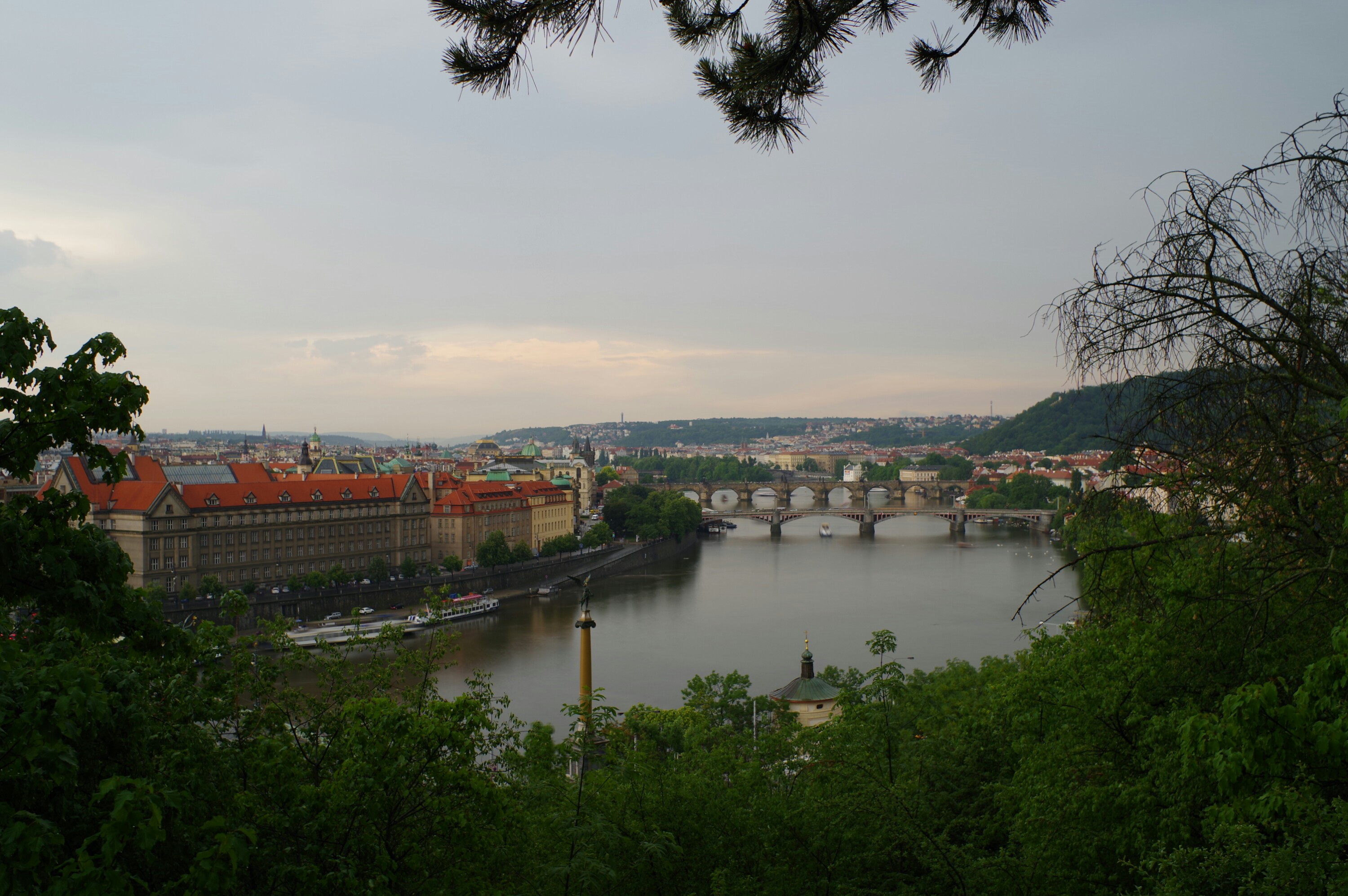 Mein Ziel am Vormittag ist eine Aussichtsplattform oberhalb der Stadt. Die Wolken sehen bedrohlich aus. Egal. Geh trotzdem hin. Es donnert und dann öffnet irgendwer die Schleusen. Nicht eine kleine. Nein gleich das große Ding inklusive Propeller geklaut aus einem Windkanal. Der Regen kommt gefühlt waagerecht. Suche Schutz unter einem Baum. Eine Buche. Den Wind hält sie etwas ab. Das Wasser nur die ersten Minuten. Besser als nichts.