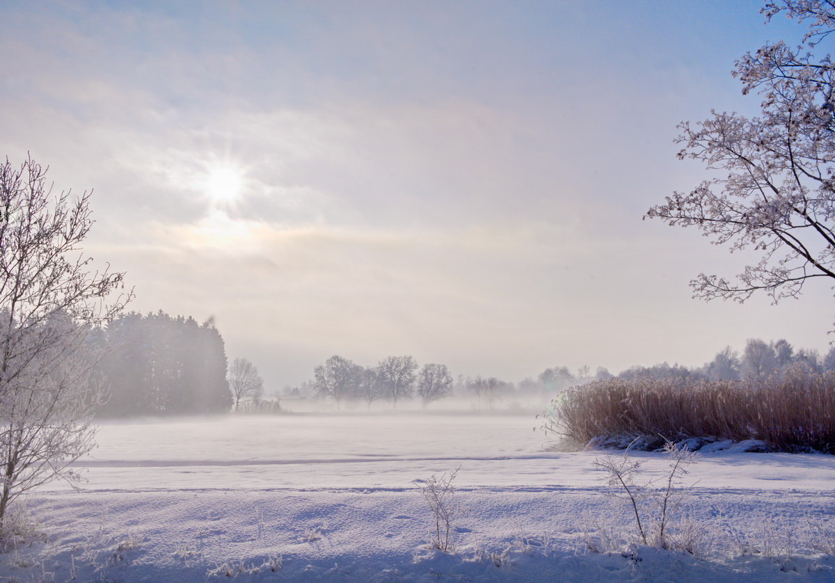 Es ist schon ein paar Tage her, dass ich diese Fotos gemacht habe. Es war eine spontane Entscheidung, denn der Blick aus dem Fenster verhieß nichts Gutes. Hochnebel. Ich hatte jedoch gehofft, dass es im Ried nicht bereits zugezogen hat und sich doch noch ein paar Sonnenstrahlen ausgehen würden. Tatsächlich. Ich hatte für etwa eine halbe Stunde Sonnenschein dann zog es wieder zu.