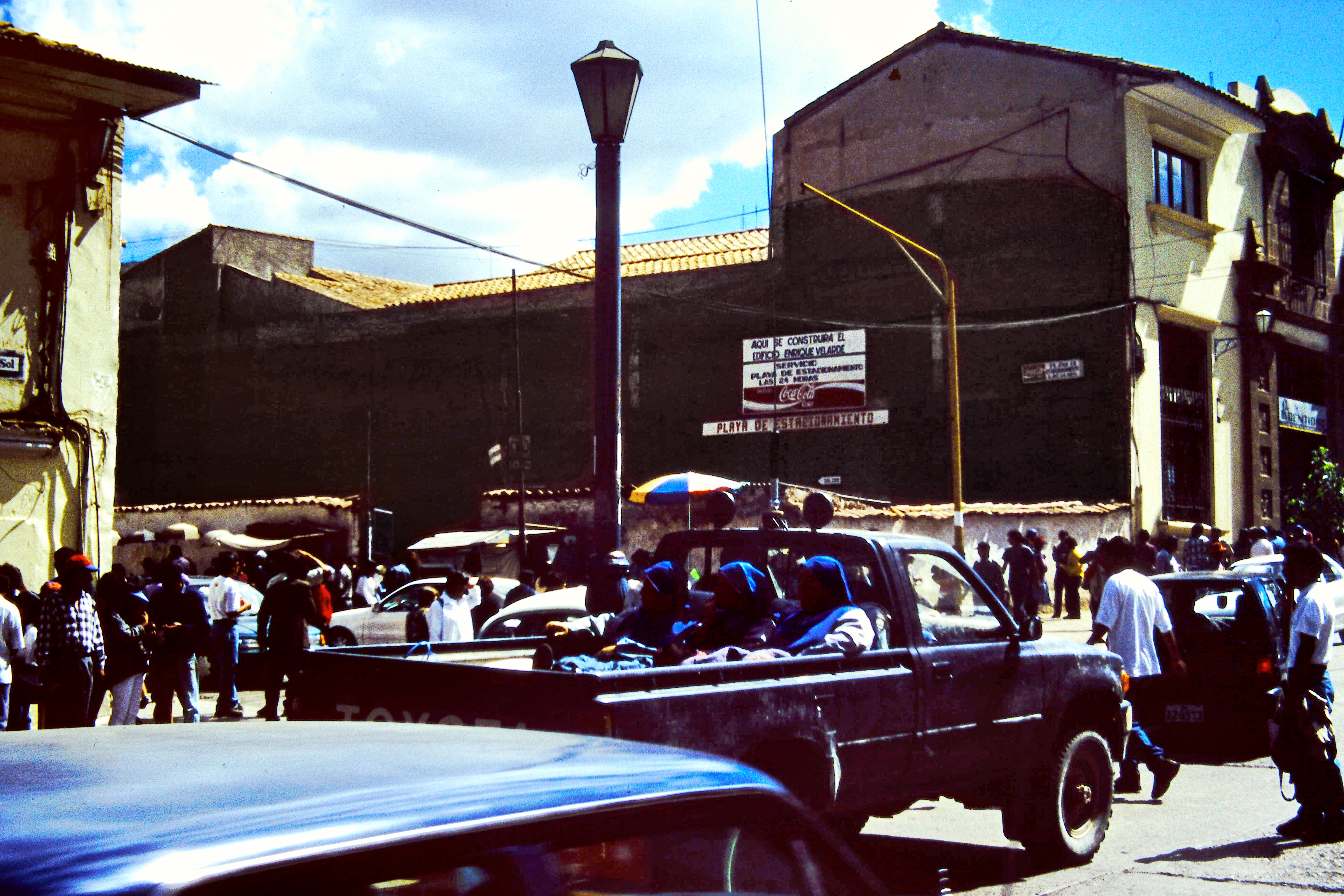 Mir ging es nach den Meridianübungen besser und so entschloss ich mich um kurz nach zehn doch noch loszugehen. Anfangs ging es recht gut, doch bei den vielen Treppen und Steigungen kam ich ganz schön ins Schnaufen. Ich weiß gar nicht wo ich genau gegangen bin. Es war schon nach Mittag, da kam ich an einer Baustelle vorbei. Die Arbeiter machten gerade Pause und es gab ein großes Palaver, als ich auf den Trupp stieß. Nach ein paar gewechselten Worten wurde mir auch etwas zu trinken angeboten. Da konnte ich schlecht nein sagen. Irgendein vergorenes Maisgetränk war es. Chicha genannt. Nachdem die Karaffe mehrmals rundumging verabschiedete ich mich. Ich hatte versucht nicht allzu viel daraus zu trinken, denn der Krug war alles andere als hygienisch. Es schwamm auch so manches darin, was ich nicht zuordnen konnte. Ich bekam jedenfalls Blähungen. Eigentlich wollte ich noch den Berg höher hinauf, doch das Grummeln im Magen verhieß nichts Gutes ….