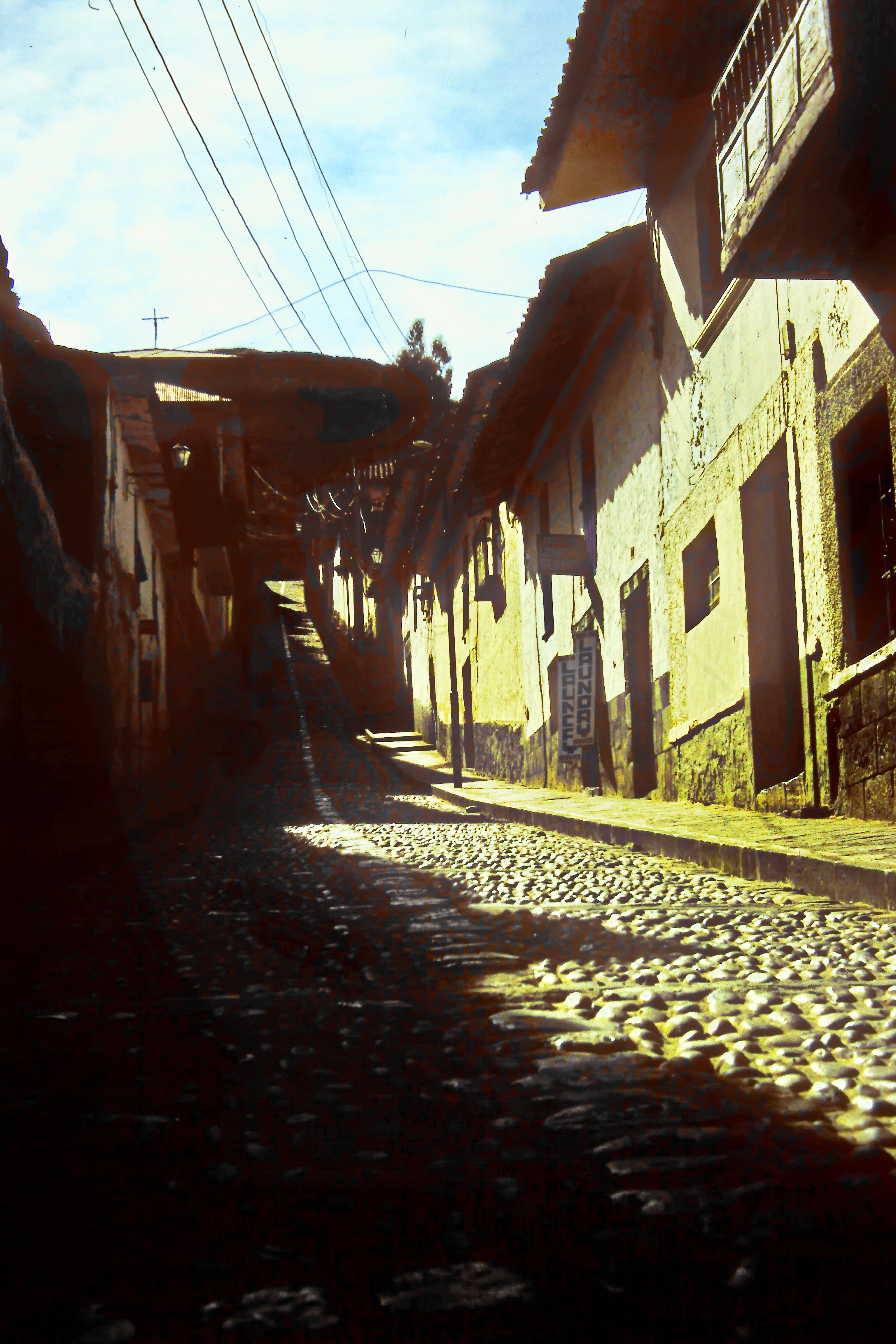 Der Höhepunkt meiner Leidensgeschichte kam aber mit dem Zeitpunkt der Weiterfahrt, denn es wurde immer kälter. Durch das Fenster zog es immer noch! Ich stopfte schon alles mögliche in den Spalt. Nichts half. Den Platz wechseln konnte ich auch nicht, denn der Bus war so voll, dass manche auf dem Boden schliefen. Ich tat kein Auge zu und zählte die Minuten. Endlich, endlich kamen wir um kurz vor fünf in Cuzco an. Ich fror und fühlte mich erbärmlich. Wir wurden am Ausgang von einer Frau abgefangen, die etwas von Hostel sagte. Mir egal – ich brauchte eine warme Dusche und Schlaf!Das Zimmer ist unbeheizt, die Dusche im Gang gerade noch warm, aber das ist alles egal, denn das Bett stand still und war nach ein paar Minuten kuschelig warm.