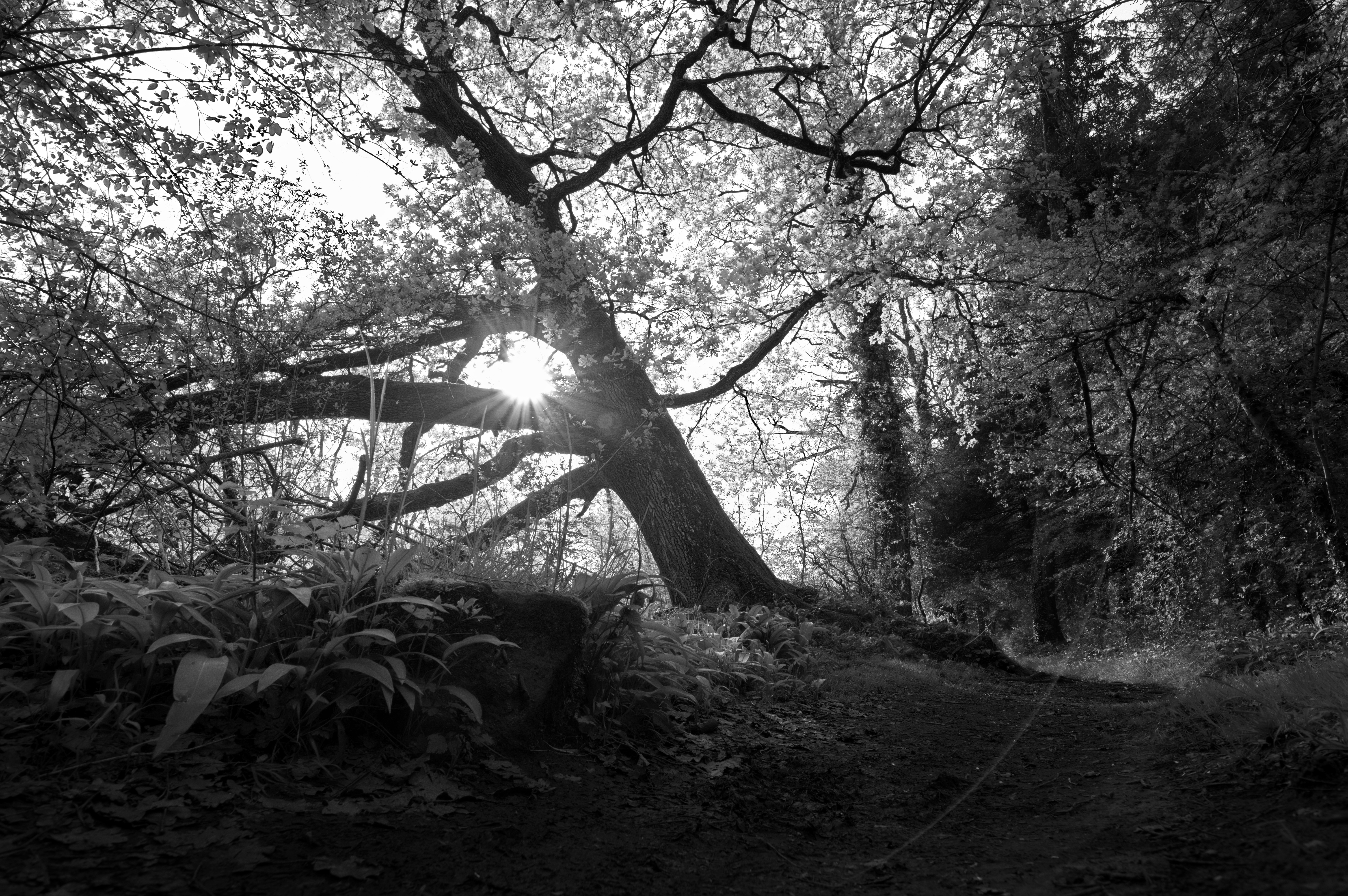 Egal. Es gibt hier genug zu sehen. Gemächlich schreite ich durch den Auwald. Ich bewege mich teilweise wie durch einen Märchenwald. Was fällt das fällt. Stütze mich auf einen umgestürzten Baum und sinke tief ein. Der liegt schon lange da. Einige Jahre. Atme tief ein und genieße den markanten Geruch des Bärlauchs. Hin und wieder halte ich inne, um zu entscheiden, ob ich hier ein Foto mache. Geh einen Schritt zurück, dann tiefer und etwas zu Seite. Nein. Noch immer nicht. Geh auf die Knie und kurz darauf stütze ich meine Ellenbogen im modrig feuchten Untergrund ab. JA! Das ist es ….